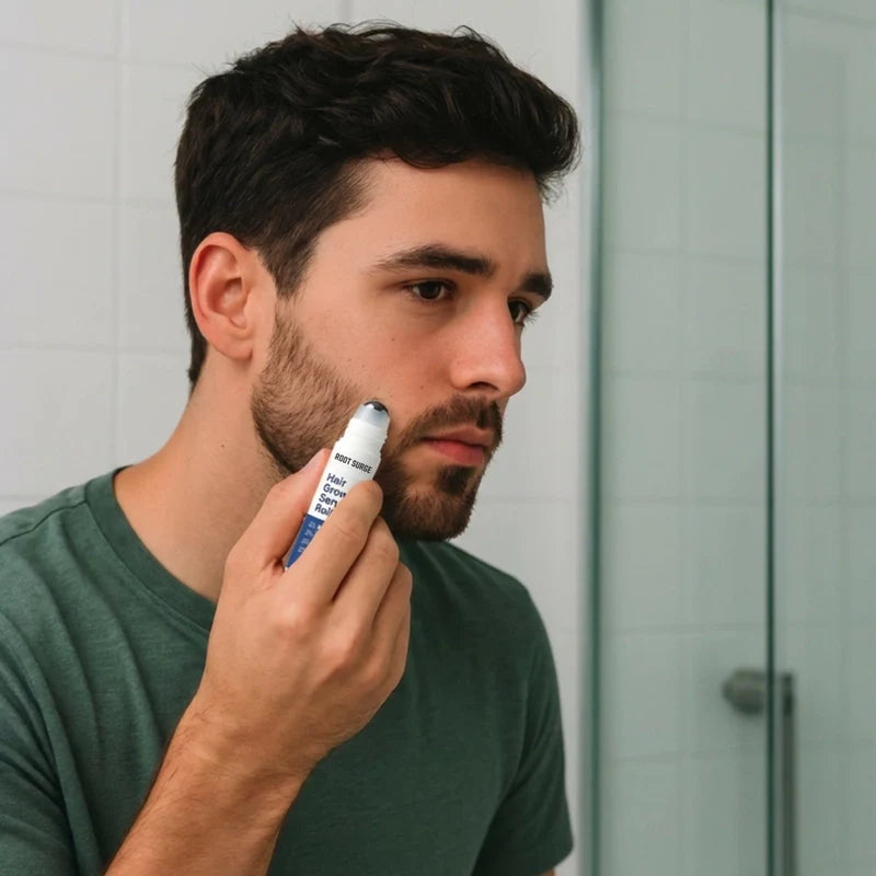 Tired of patchy spots? Root Surge is your secret weapon for a noticeably fuller, thicker beard. Get the confidence boost you deserve in just 90 days!